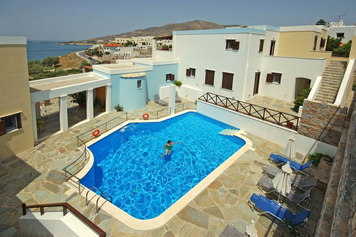 The apartments are class A, and a pool and parking area are also available. The port of Ermoupolis,capital of Cyclades, is 10km far, and the airport 11km.